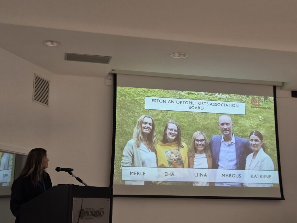 Igaunijas un Lietuvas kolēģi prezentē savas valstis un to optometristu asociācijas ECOO ģenerālajā asamblejā Apūlijā, Itālijā, 2025. gada 19. oktobrī.
