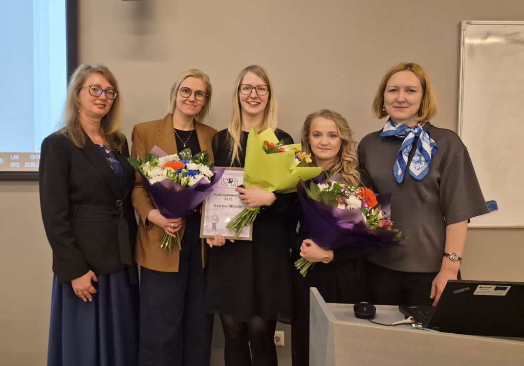 LOOA konkursa “Gada optometrists 2025” finālistes kopā ar LOOA valdes priekšsēdētāju un LOOA prezidenti. No kreisās: Kristīne Detkova – LOOA valdes priekšsēdētāja, Aija Makovska – konkursa “Gada optometrists 2025 fināliste, Katrīna Ulberte – titula “Gada optometrists 2025” ieguvēja, Zane Jansone-Langina – konkursa “Gada optometrists 2025 fināliste, Aiga Švede – LOOA prezidente.