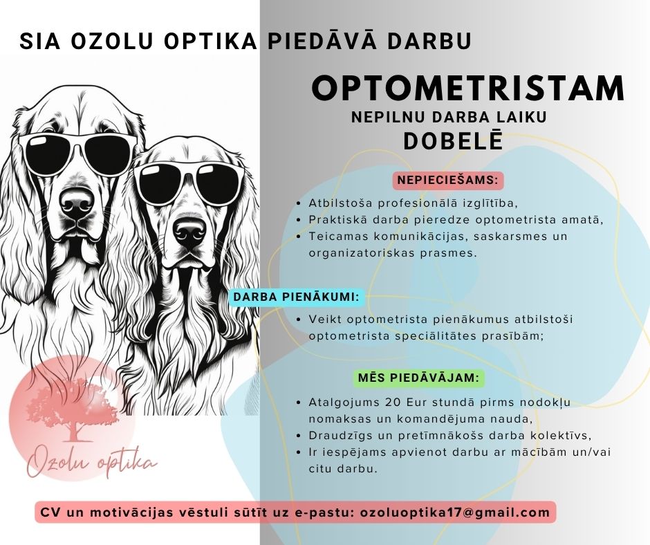 Ozolu optika aicina optometristu pievienoties savai komandai Dobelē